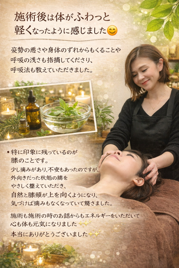 最近サロンkinoeで施術しましたお客様からいただいたご感想です。