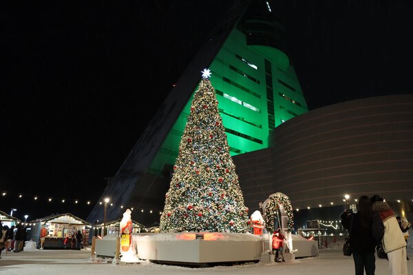高さ約10mの大型クリスマスツリーに約2万球のLEDが輝き、