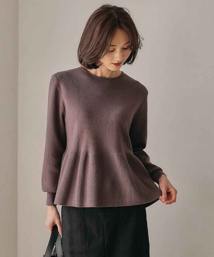 このニットの最大の特徴は、ゆるやかなペプラムのAラインシルエット。