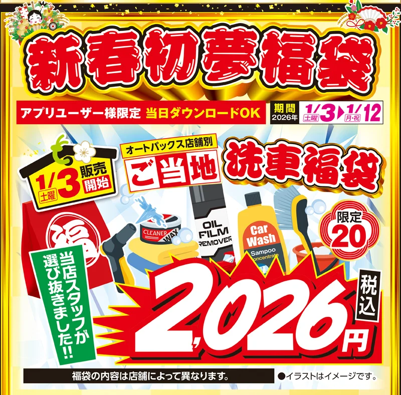 最大20%オフはすごい!オートバックスの初売りと福袋2026最新情報!