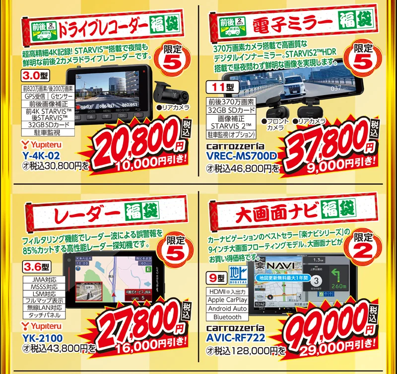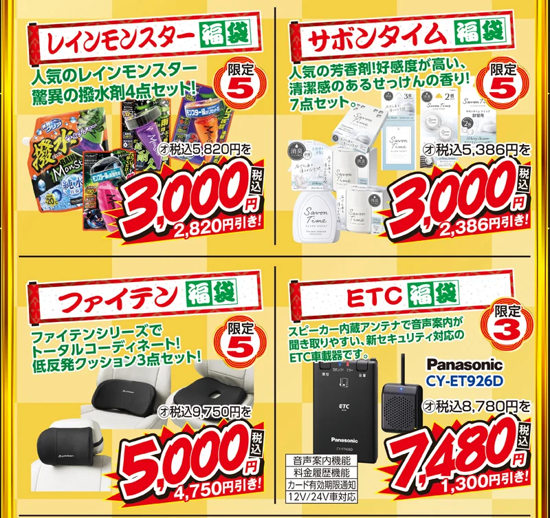 福袋も、タイヤも、カーナビも、すべてお得に買えるこの機会を逃す手はありません。