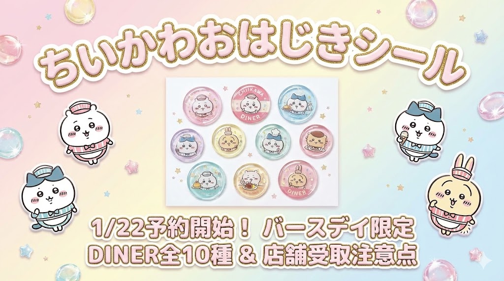 【1/22予約開始】ちいかわおはじきシールの予約はバースデイで!DINERデザイン全10種や店舗受取の注意点を徹底解説Q&A