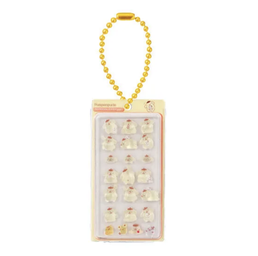 ポムポムプリンは黄色のボールチェーンが印象的で、見ているだけでほっこりするようなあたたかさがあります。