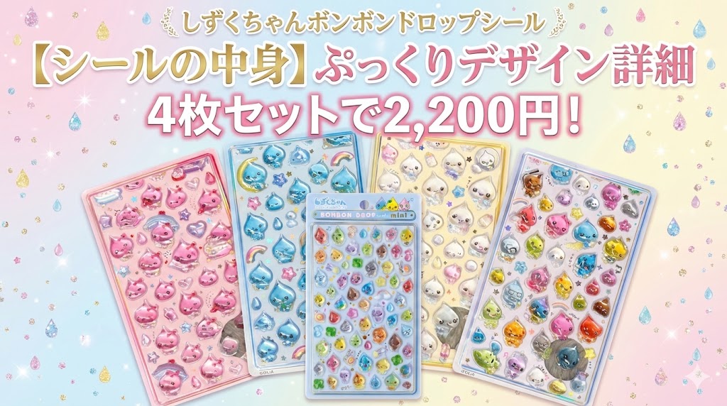 今回の「しずくちゃんボンボンドロップシール」は、4枚セットで構成されています。