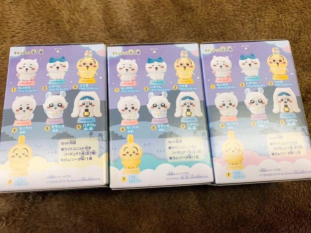 「私が買ったBOXの配列はライトブレスレットちいかわ、うさぎ、パジャマうさぎが各2でした」