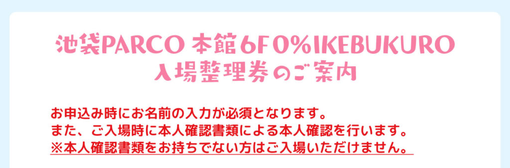 | 池袋PARCO 本館6F「0% IKEBUKURO」 | JR池袋駅から徒歩圏内 | 11:00~21:00 | 最終日は閉場時間が早まる可能性あり、公式要確認 |
