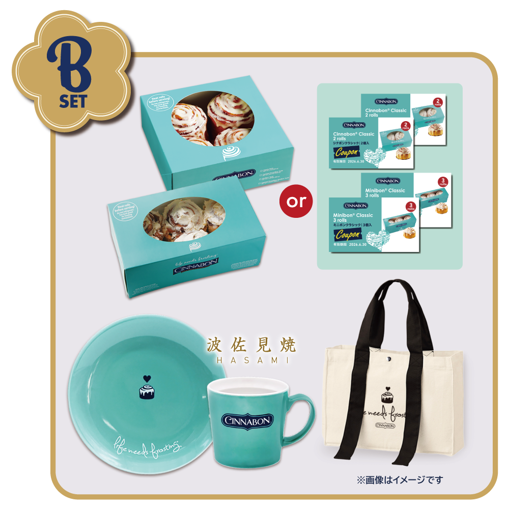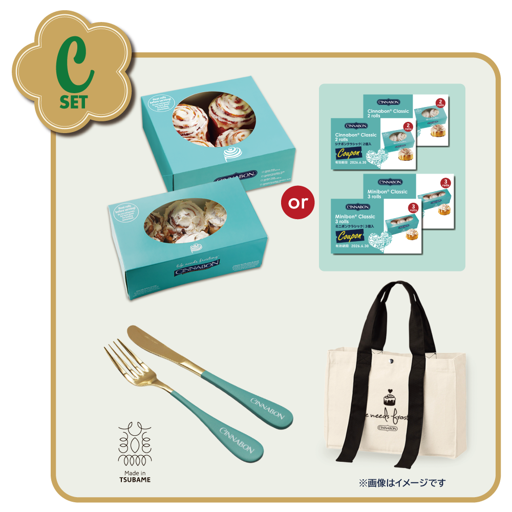| 中身の核 | シナボン・ミニボン合計10個+波佐見焼または新潟燕産カトラリー |