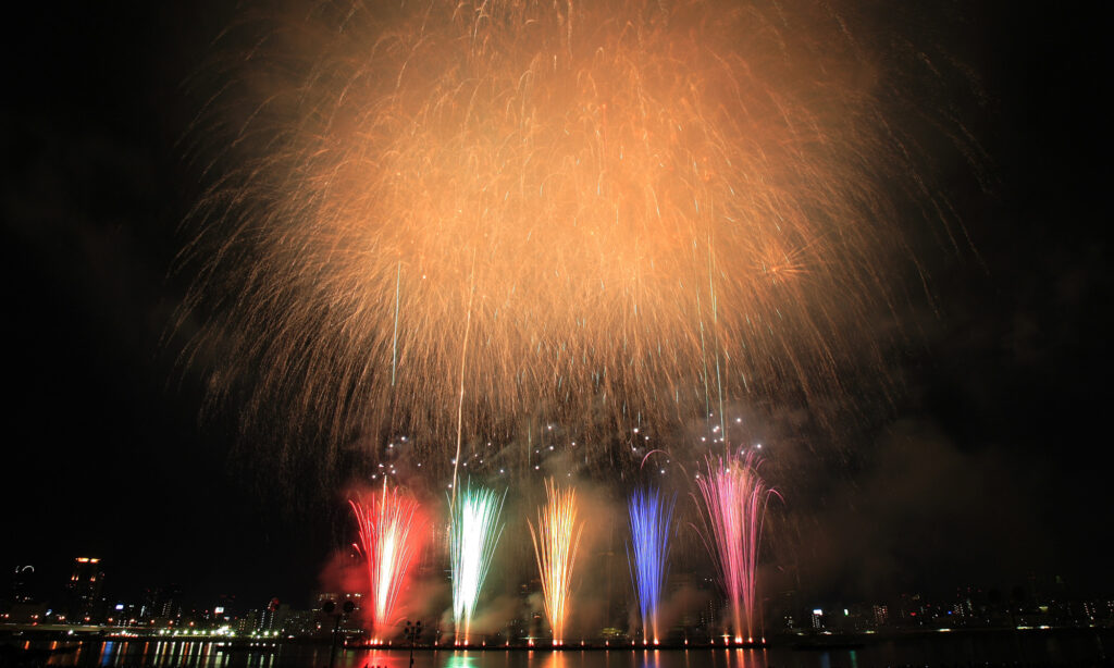 万博のテーマソングに合わせた音楽花火や、各国の文化をイメージした色とりどりの花火が夜空を彩ります。