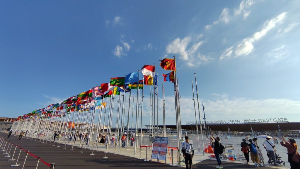 これだけ多くの国と地域の旗が一堂に会する光景は、まさに万博でしか見ることのできない特別なものです。