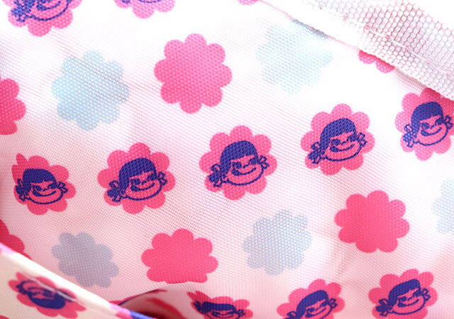 ペコちゃんのワッペンがアクセントとして付いています。