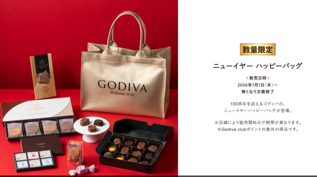 ゴディバ公式オンラインショップで販売されるニューイヤー ハッピーバッグ2026は、