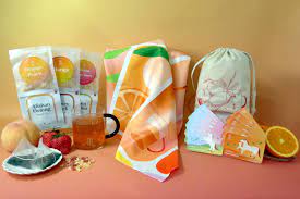 限定グッズを使ってフルーツティーを淹れる瞬間、カラフルなバンダナを身につける瞬間、