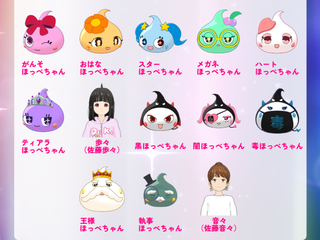 - がんそほっぺちゃんをはじめ全キャラクターを網羅