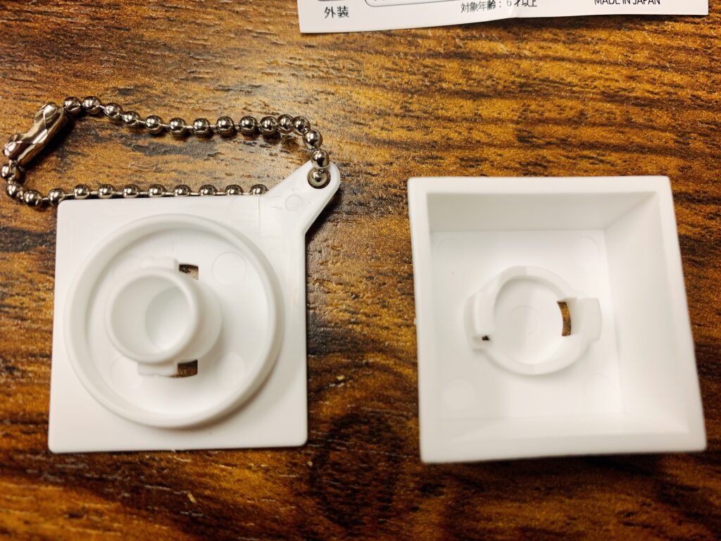 このアイテム、本当に優秀で、チロルチョコの包み紙をそのままキーホルダーにできるんです。