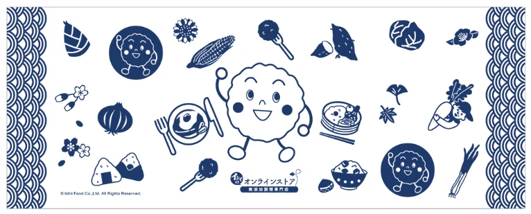 イシイ福袋2026には、福袋のためだけにデザインされたオリジナルのミート君手ぬぐいが付いてくるんです。