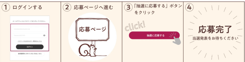 当選発表はメールで届くので、事前に登録を完了させておいてください。