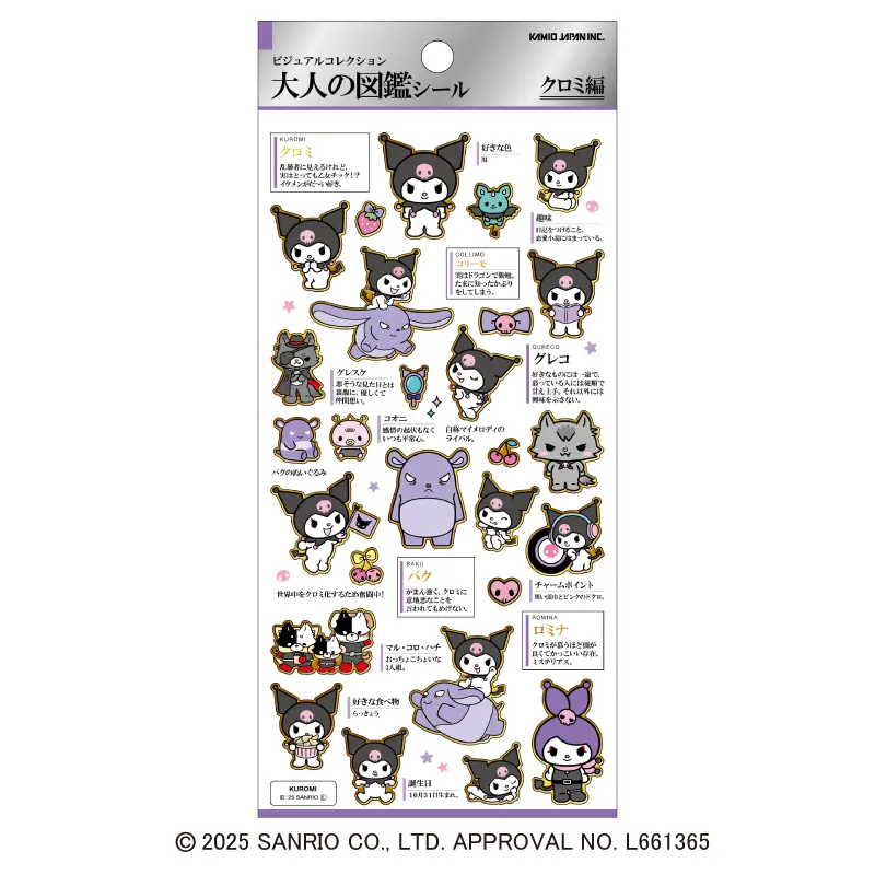 クロミの大人の図鑑シールは、マイメロディのライバルであるクロミの小悪魔的な魅力を詰め込んだ一枚です。