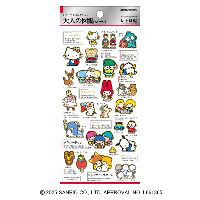 マイメロディの大人の図鑑シールは、マイメロディの愛らしい世界観を「図鑑」としてまとめた一枚です。