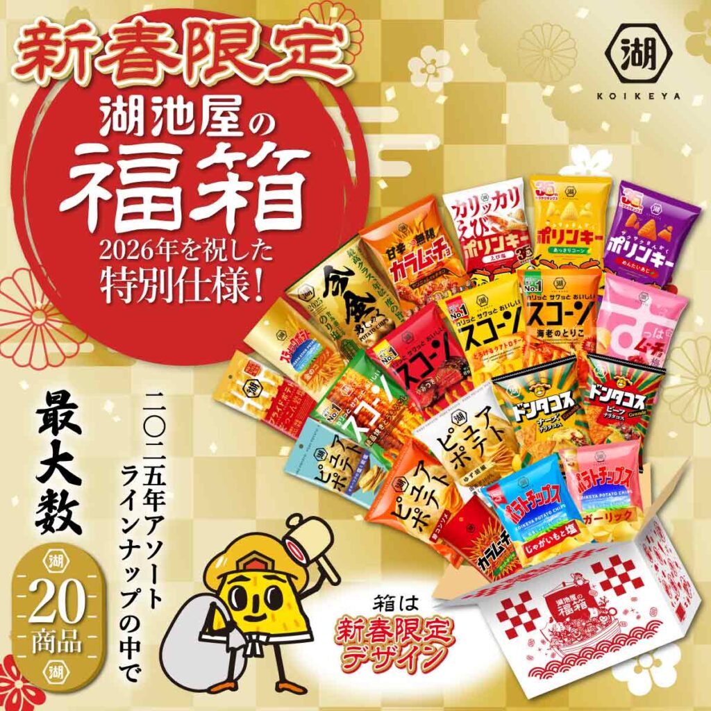 湖池屋の福袋が、2026年の幸せなスタートを切るお手伝いをしてくれることを願っています。