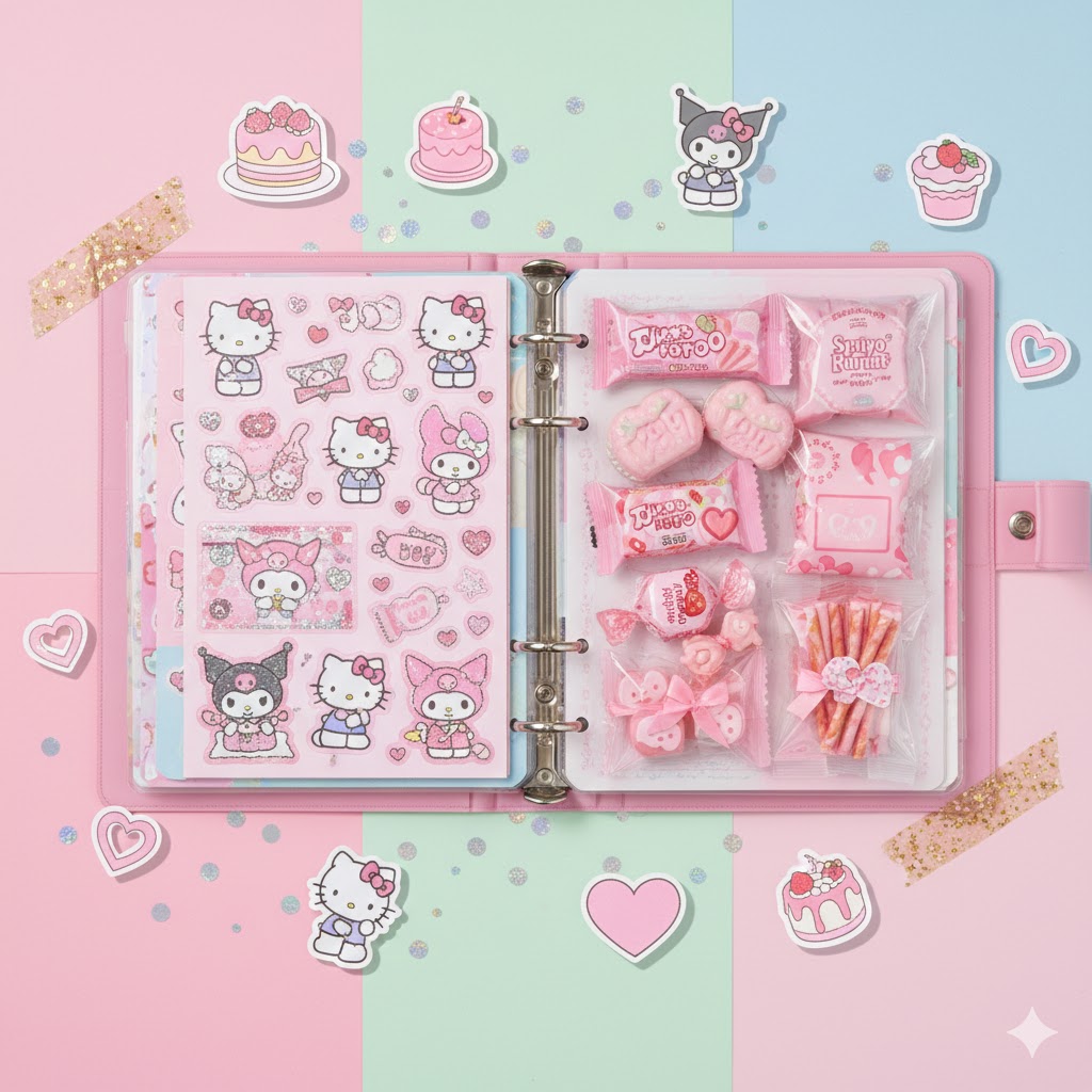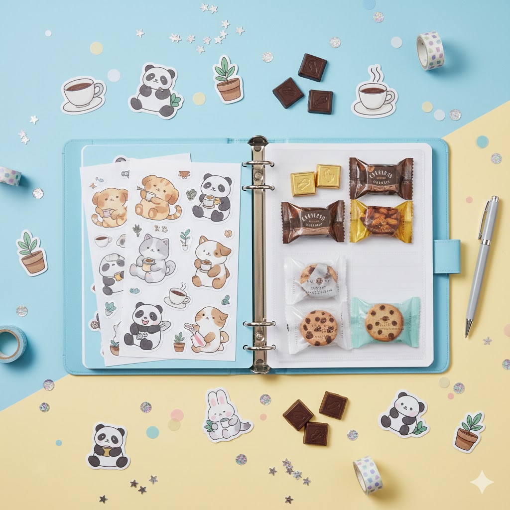 お気に入りのシールと、それにぴったりなお菓子を一緒に収納して、視覚も味覚も両方楽しめる。