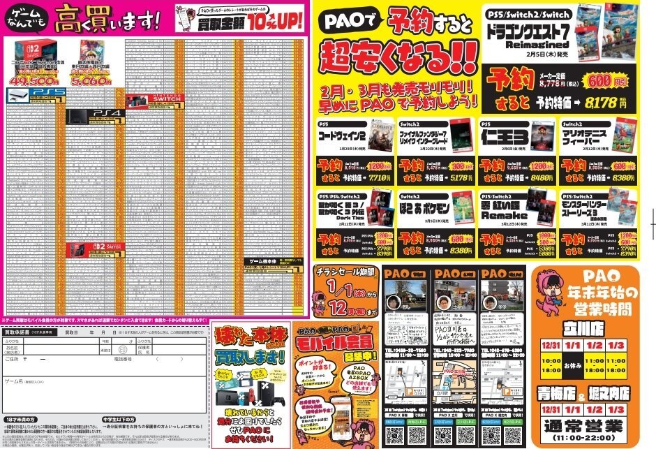 PAO立川店のお正月チラシは、まさに「お年玉企画」が満載で、見ているだけでテンションが上がります。