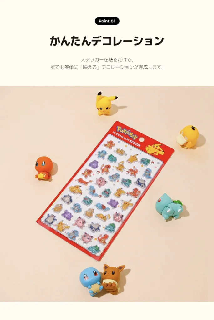 今回ご紹介するポケモン版は、既製品の3Dクリスタルステッカーなので、購入後すぐに貼って楽しめる手軽さが魅力。