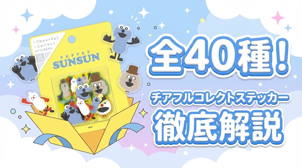 【パペットスンスン】40種類のスンスンたちが入ったチアフルコレクトステッカーが発売!どこに売ってる?柄は?活用法や売り切れ情報など徹底解説!