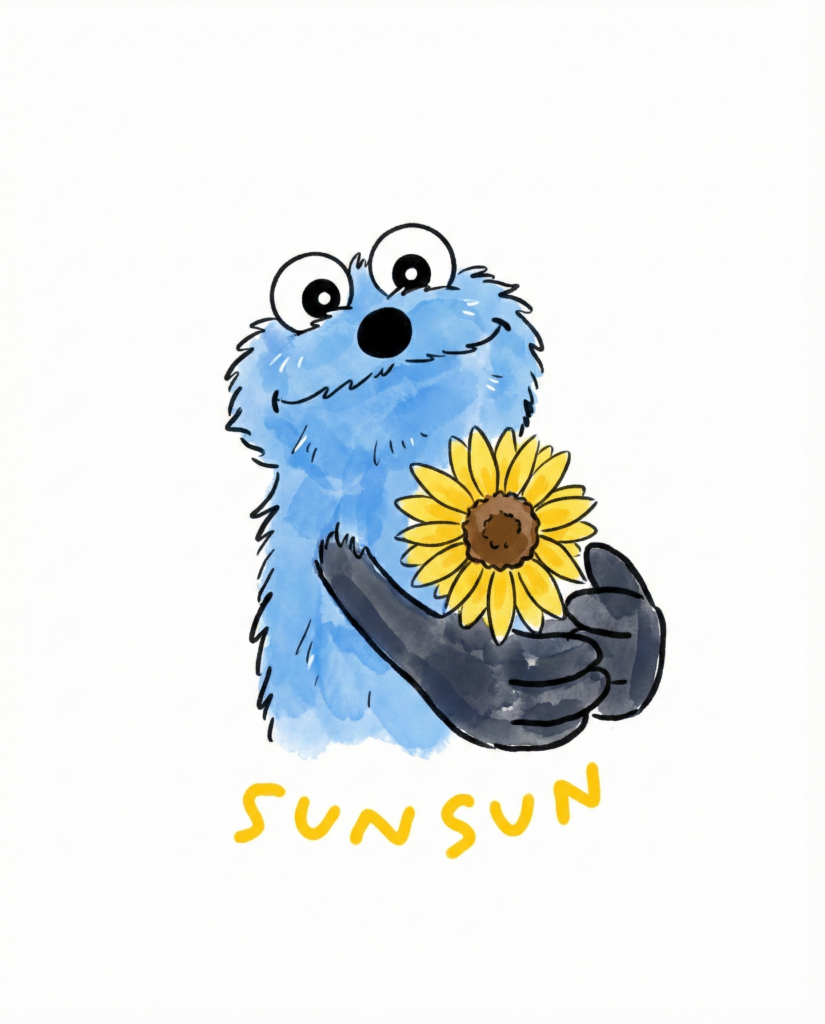 描き方2は、ひまわりを持った、優しい笑顔のスンスン。どちらも可愛くて、それぞれの魅力があるんですよね。