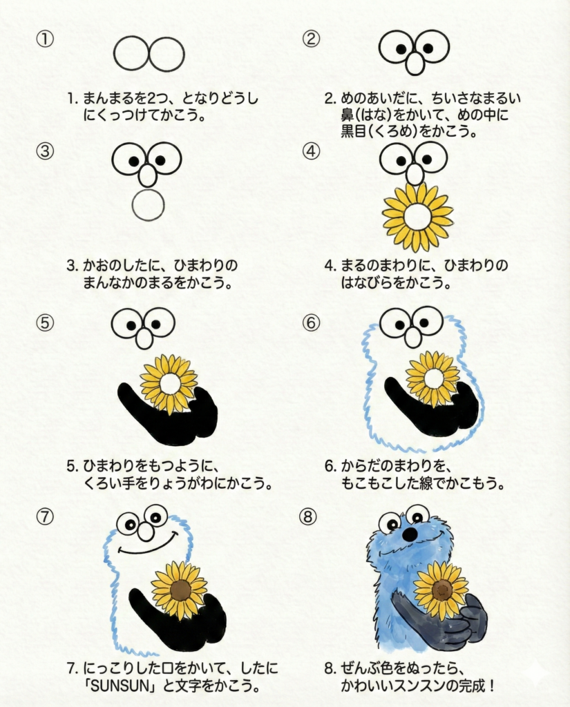 パペットスンスンのイラストを描いてみよう!小学生など子どもでも描ける簡単ステップ+解説で誰でも描ける描き方ガイド