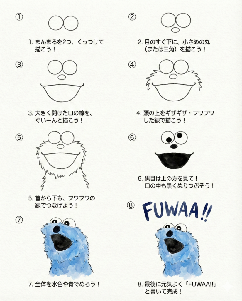【描き方1】元気いっぱい!クッキーモンスター風のスンスン