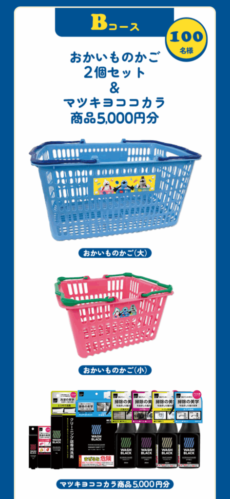 - 景品:ブランケット、おかいものかご、ディスペンサー、ランドリーボックス、ステッカーなど