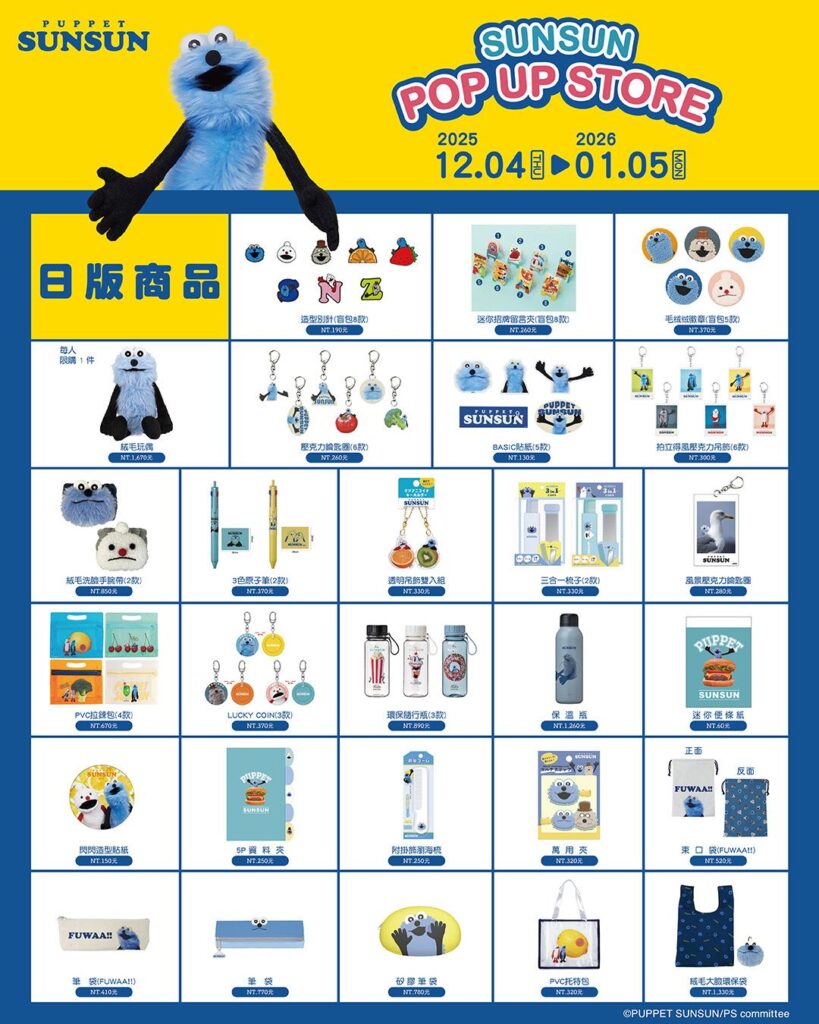パペットスンスンの台湾限定ポップアップストア「SUNSUN POP UP STORE 2025-2026」は、