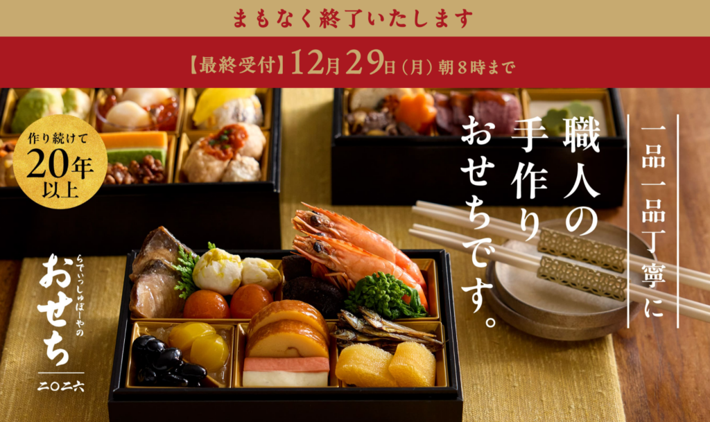 【最終案内】らでぃっしゅぼーやおせち2026はいつまで予約できる?12月29日朝8時がリミット!