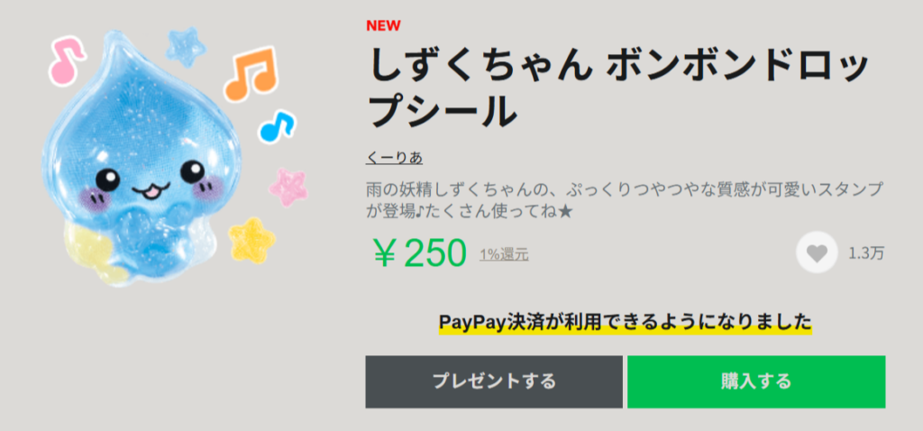 まず、このLINEスタンプの名前は「しずくちゃん ボンボンドロップシール」。