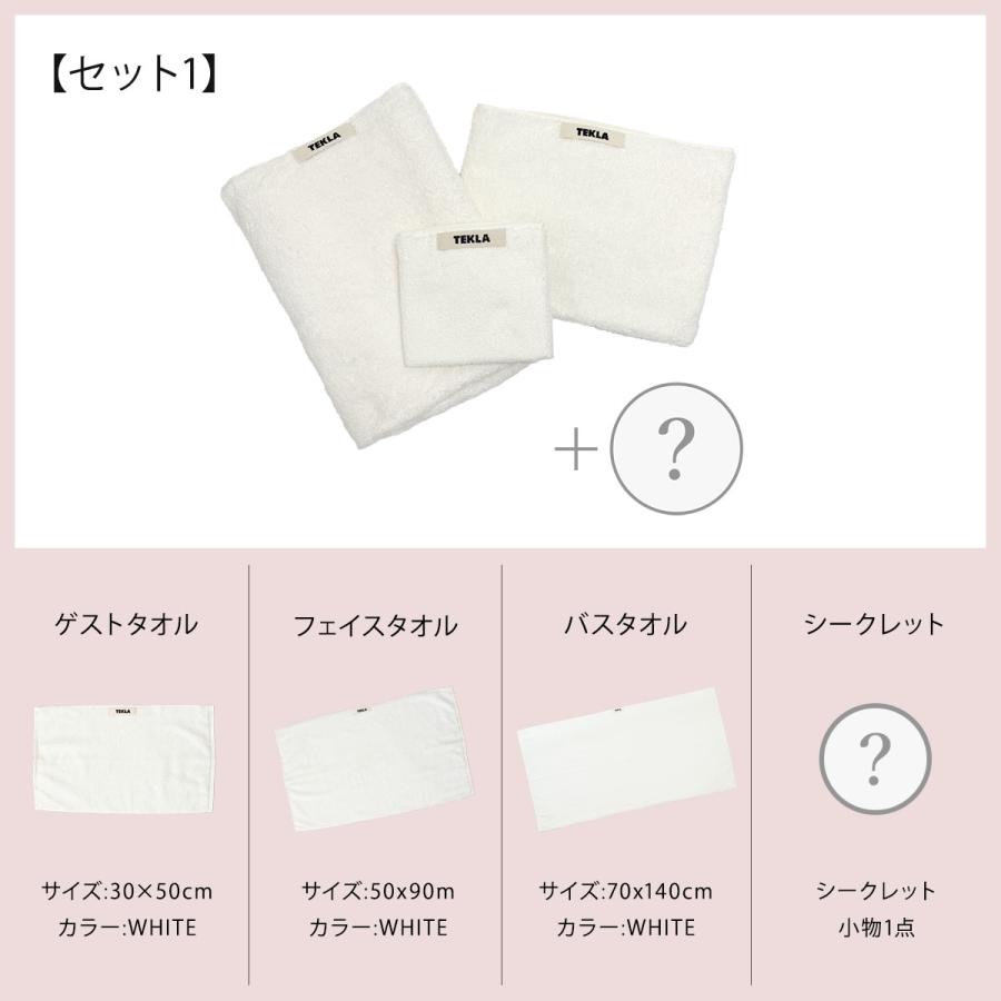 TEKLA福袋2026は、タオル3種類とシークレット小物1点の合計4点セットという構成になっています。