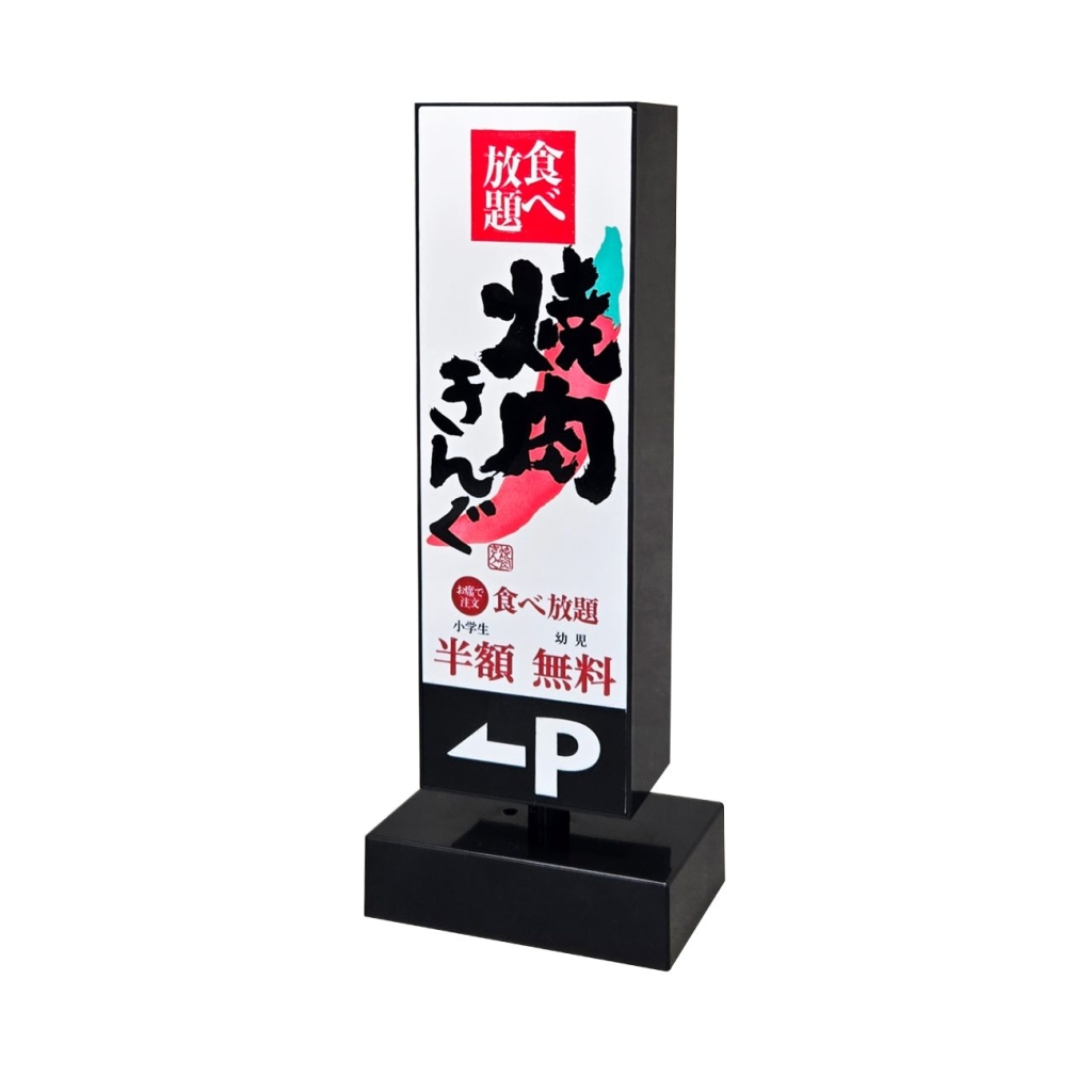 本物の焼肉屋さんの看板そっくりなデザインで、縦型の立て看板スタイル。